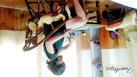 cunny plein de pâte! sexe super chaud avec des cheveux roux en longue robe dété