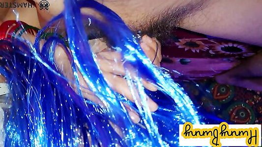 méchant mannequin aux cheveux bleus se gargarisant de viande dhomme et labourant avec un étranger