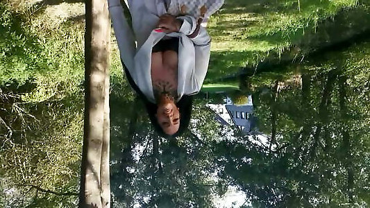 marcher dans les bois en montrant mes gros seins de milf mène à une grosse charge de sperme sur mes seins