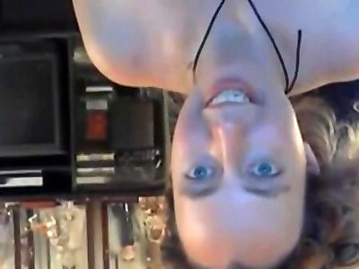 une ado blond et joufflue dame se coince la chatte avec ses fringues et sa fausse bite