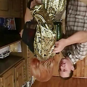 délicieuse chatte ronde aux cheveux clairs pour la fesse et la charrue dans la cuisine