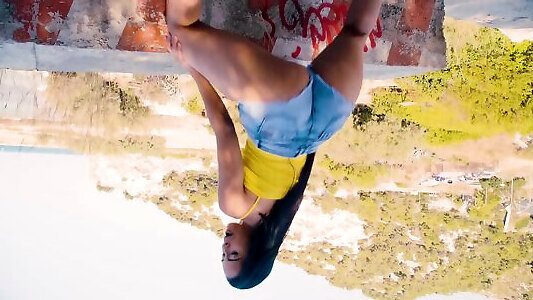 solo plumper ebony nettoie et remue ses énormes sacs amusants