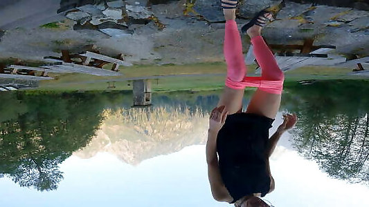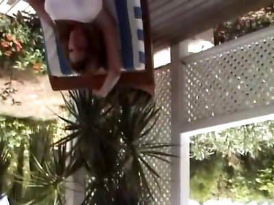 nippleringlover-couguar ultra-pervers se branlant à lextérieur dans la piscine, plongeant des exercices géants dans des tétons percés complètement ouverts