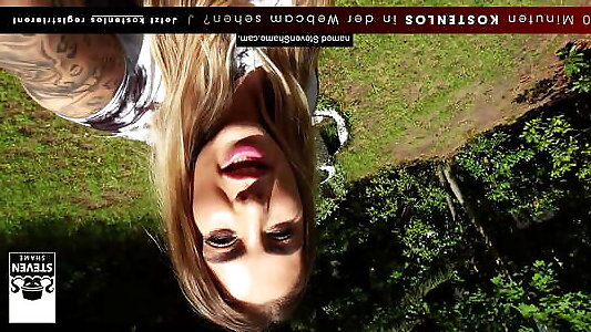 super-vilaine blonde suce profondément et chevauche une grosse bite sur la pelouse
