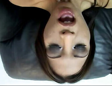 une jolie brune ouvre grand la bouche pour sucer giant tit cock cumshot bite monstrueuse!