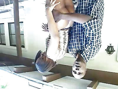 ébène bizarre avec les mains sur la tête le jeu la met sur ses putains genoux lui donne quelque chose en quoi croire - jhodez1