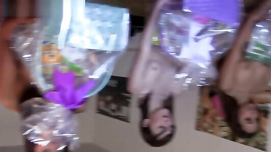 rikki, spinner au gingembre, donne nerveusement un strip-tease à miss pussycat lapdance