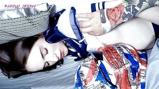 idole ukrainienne de 22 ans-elle est vêtue dun cosplay décolière japonaise et se fait doubler de sperme dans lanus et la chatte!