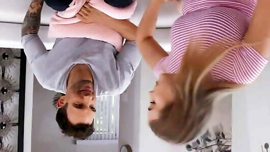 une blonde super chaude qui aime une baise de style cowgirl hardcore dans sa cuisine