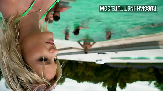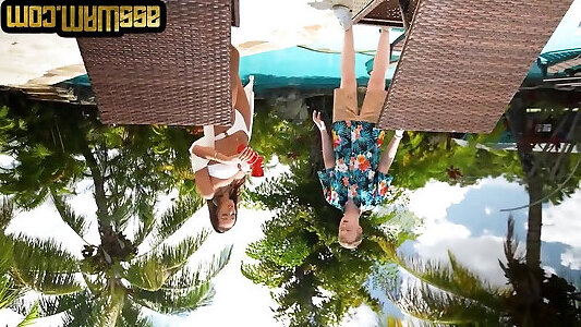 lezzie à trois autour de la piscine