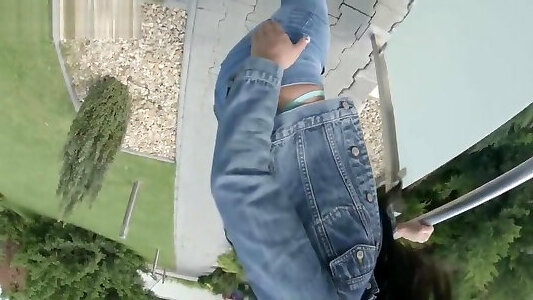 une cascadeuse aux cheveux foncés montre sa chatte entassée