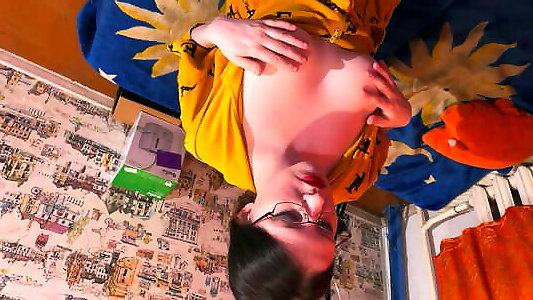 cette adorable petite salope a de beaux seins innés et elle est vêtue de lunettes tout en se faisant tirer dessus