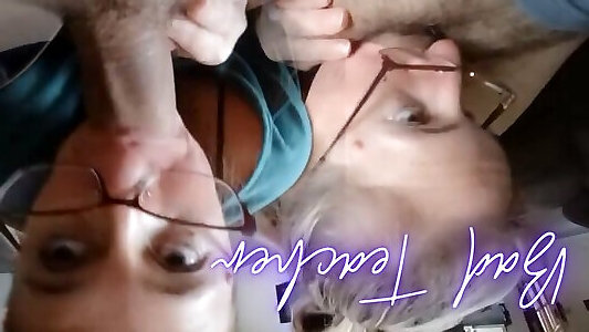 grand professeur de pipe avec des lunettes et une grosse éjaculation dans la bouche