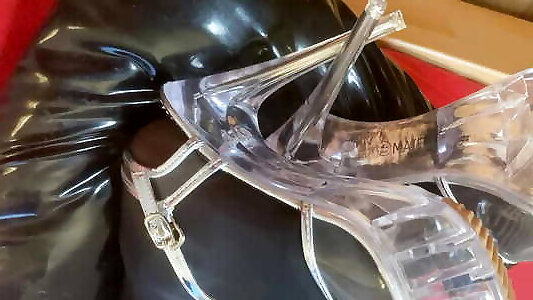 maîtresse fait jouir lesclave dans une sangle de talon transparente