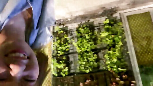 brune angélique avec de faux seins se régalant de gorge profonde dans un tournage de point de vue