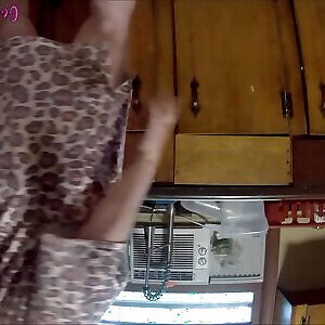 la caméra domestique regarde un gros cul en culotte blanche. vieille femme en bas neufs lave la vaisselle. pawg
