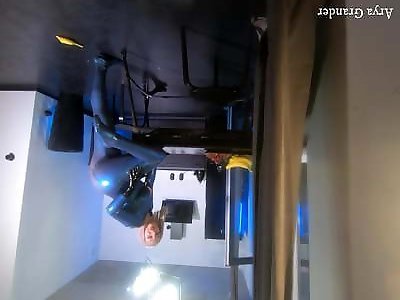 une fille super chaude vêtue dun pantalon de yoga rose baise sa chatte serrée avec un gros faux pénis de la bbc!!