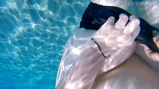 footjob sous-marin fucky-fucky & amp; point de vue dessorage de tétons à la plage publique - gros seins innés pawg plumper wifey étant insatiable en vacances