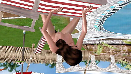 jolie fille se masturbe à laide dune bouteille près de la piscine-porno animé
