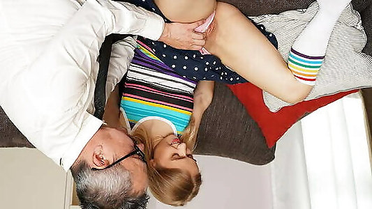 daddy4k. douce chatte de rousse ultra-mignonne doigtée par bf et son beau-père âgé