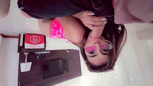 une ado latine aux gros seins sexy joue dur avant de se mettre à genoux pov