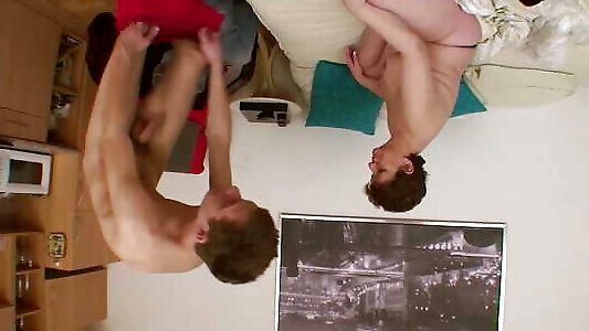 une femme sexy triche avec son patron et la baise devant son mari et éjacule dans sa chatte
