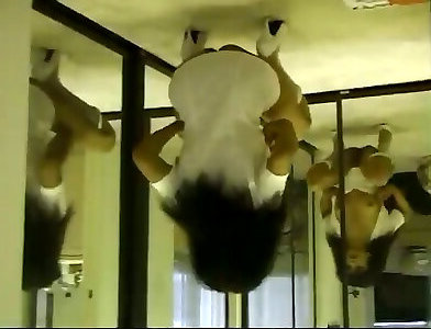 une rousse flexible se penche comme un bretzel tout en prenant une énorme bite