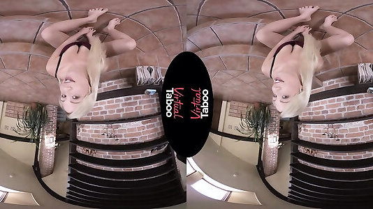 blonde platine brûlante en micro-jupe bleue éjacule
