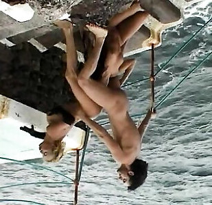 diabolique-une beauté brune se fait soulever en lair par une bite