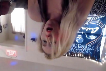 blonde sexy tatouée chevauche un gode sur cam avec une caméra gode