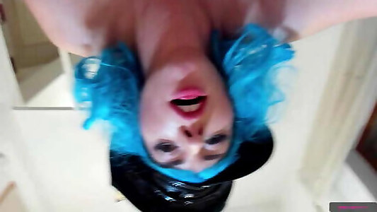 jennifer aux cheveux bleus aux gros seins baise et suce un faux pénis