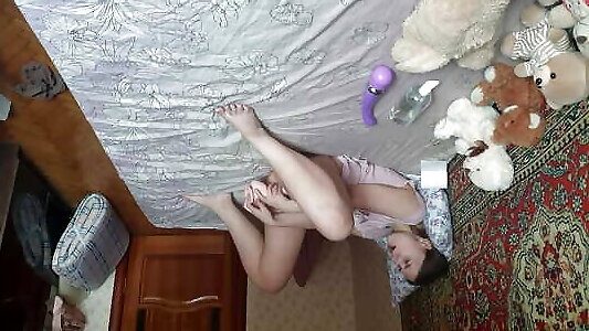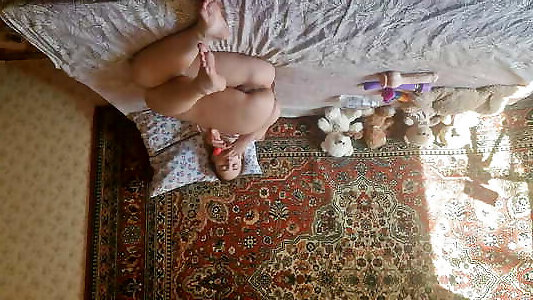 demi-soeur mignonne filmée en gros plan devant la caméra alors quelle masturbe tranquillement sa petite chatte rose avec un gros gode-luxuryorgasm