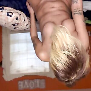 laineux ash-blonde milf pouces, joue schol vip grls dnjar boys un faux pénis et obtient du sperme sur sa chatte