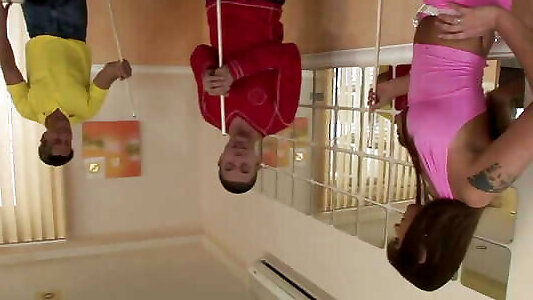 deux brunes vigoureuses font lamour avec quatre mecs