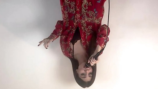 une demoiselle cool tente une tenue de gimp à travers la montre