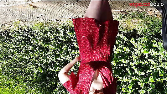 déshabillage, robe noire et culotte rouge, simulation de fellation