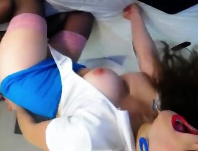 une écolière se déballe et 2 pénis géants se mélangent sur les lèvres