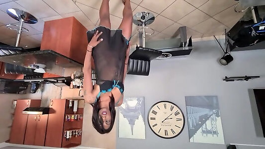 nettoyage de vitres nues avec une brune chaude en robe transparente et sans culotte. amy haze