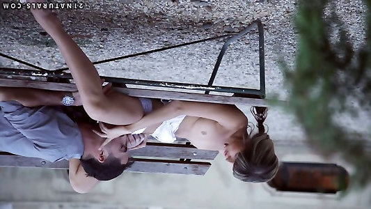 une ado folle avec un corps maigre demande à son amant de lui bouffer la chatte dehors