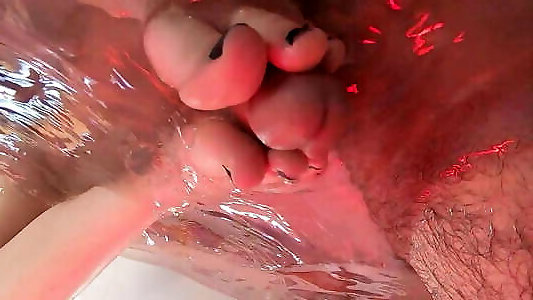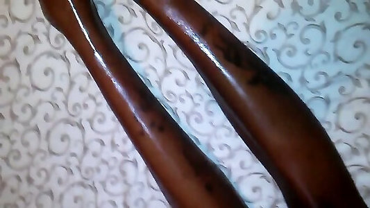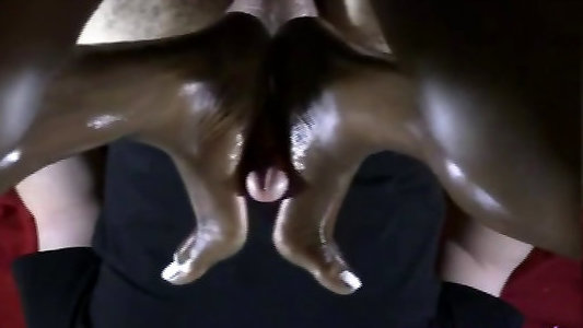 branlette avec les pieds des nylons bronzés avec une bite piégée à lintérieur