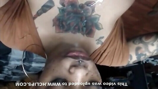 une méga-salope noire super chaude avec un cul dur comme le roc donne une belle pipe à un fille laiteux