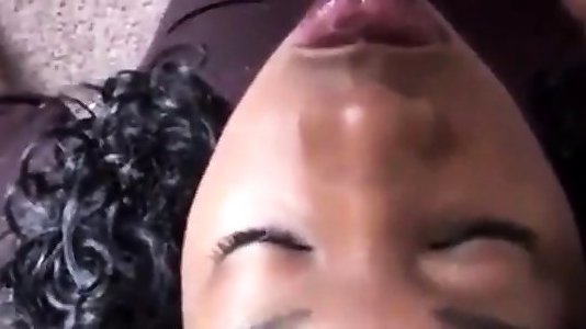 modèle noir aux gros seins sheisnovember & rsquo; s de grandes aréoles et mamelons suspendus à des seins xxl écrasés et avalés pendant limage