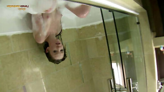 adorable chérie aux cheveux noirs prenant une douche super chaude