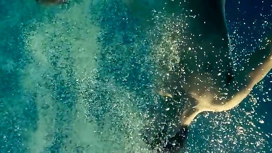 evelyn lory aux cheveux noirs superbe mettre sur un strip-tease uber-sexy dans une piscine