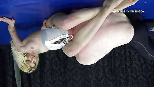 sexfight-petite blonde maîtrisée et baisée par un mec costaud