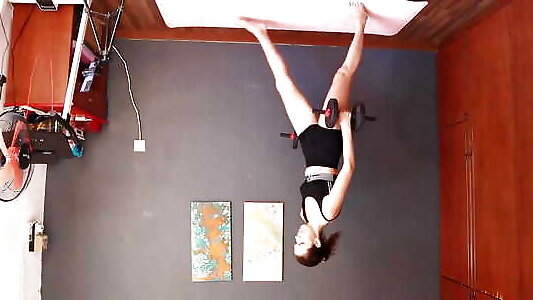 faites une séance de yoga chaud avec des squats et de la masturbation
