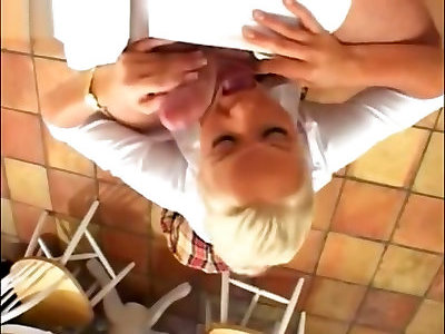 ash-blonde étudiante bonbons nourris de sperme après avoir tous les trous exploités