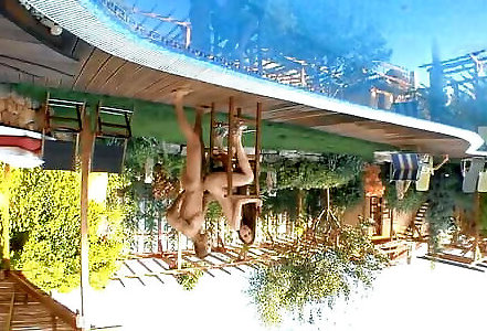 danser nue dans le jardin attire une rousse qui sapproche delle et lui mange la chatte