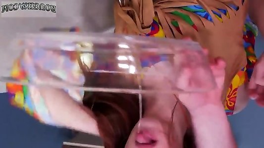 une rousse maigre de 18 ans fait une gorge profonde extrême et baise sa chatte rose durement