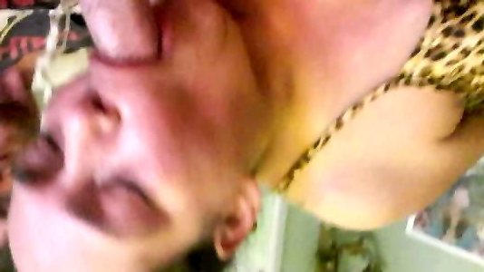 une milf sexy est assise sur le visage de son amant. milf pisse dans la bouche de son esclave et lui fait boire sa pisse. scène complète